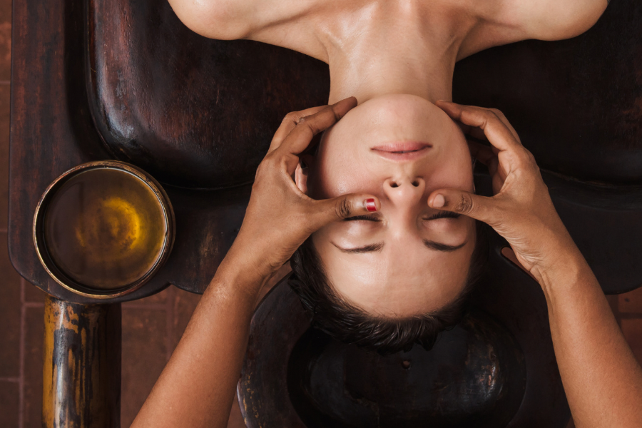 Traditional healing with herbal oils to detoxify and balance your doshas.